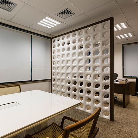 Las celosías decorativas vuelven a estar de moda. Este recurso decorativo, muy años sesenta, recobra nueva vida en los interiores de las oficinas modernas. La