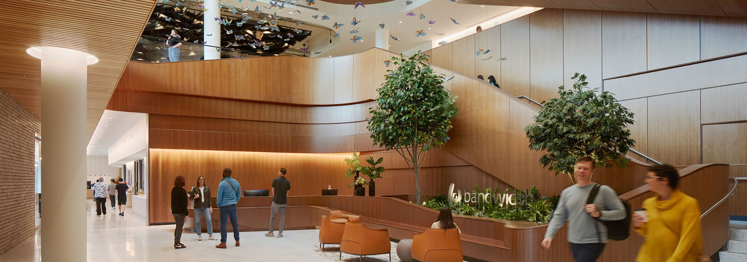 El nuevo campus de la empresa tecnológica Bandwidth, ubicada en North Caroline (EEUU), agrupa en un solo edificio las antiguas instalaciones repartidas en diferentes sitios. Así, unificada bajo un mismo techo, cada puesto de trabajo tiene la misma consideración en importancia en cuanto a diseño, con espacios tanto individuales como comunes creados para apoyar los modos únicos de trabajo de la empresa.