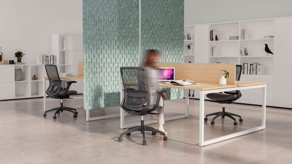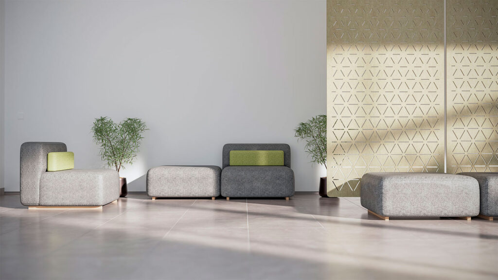 En Limobel Inwo fabricamos elementos con PET reciclado, como nuestros biombos y separadores Acustic, con diferentes niveles de absorción, que se adaptan a las necesidades de cada espacio.