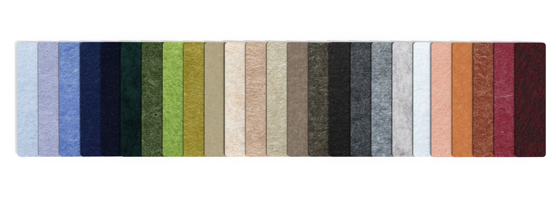 La colección RAW PET ofrece 30 colores organizados por gamas cromáticas, facilitando su integración en cualquier proyecto. Las tonalidades se agrupan en familias frías, neutras, verdes, tierras, cálidas y saturadas, permitiendo crear ambientes equilibrados, dinámicos o sobrios según las necesidades del espacio y la identidad visual de cada entorno de trabajo.