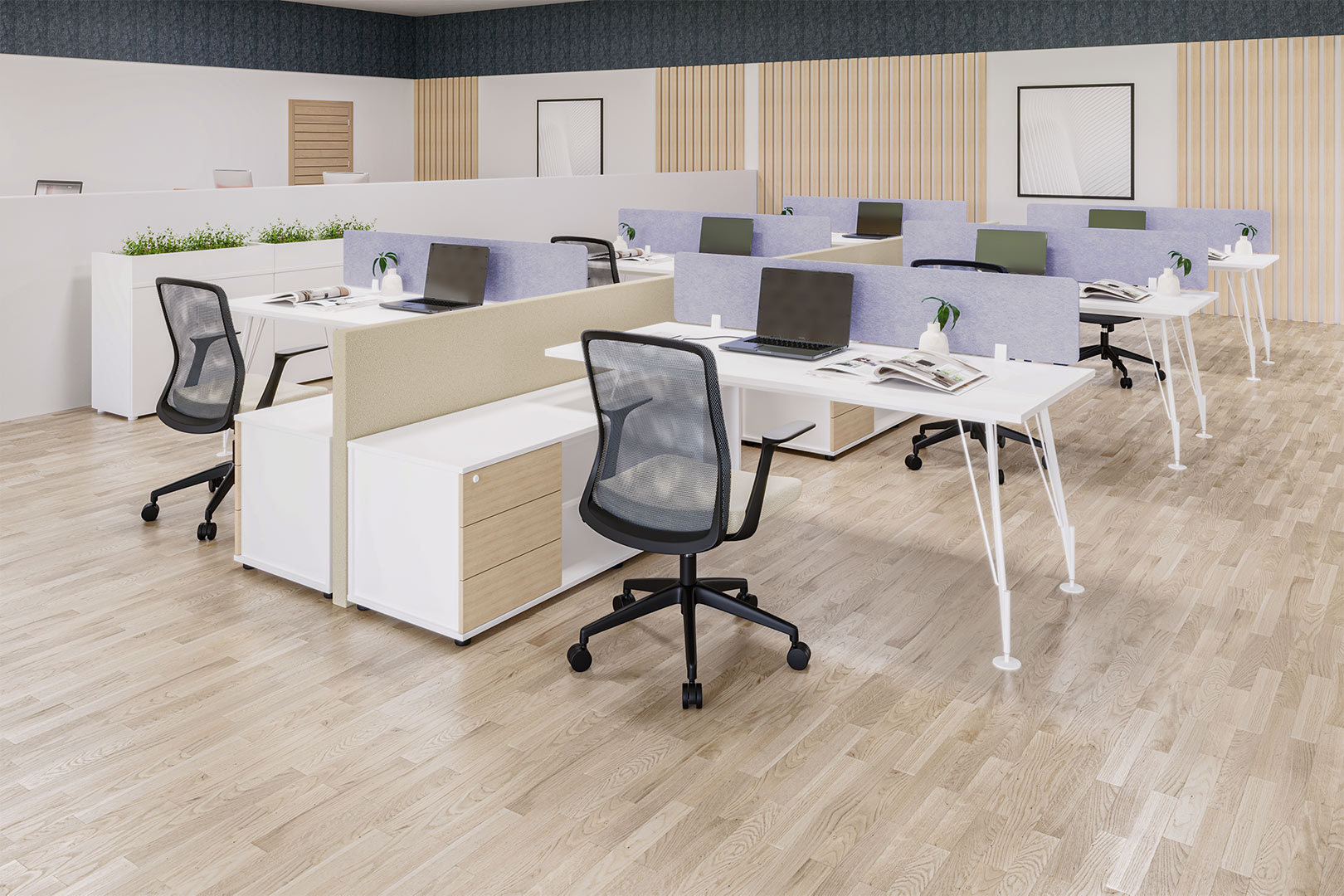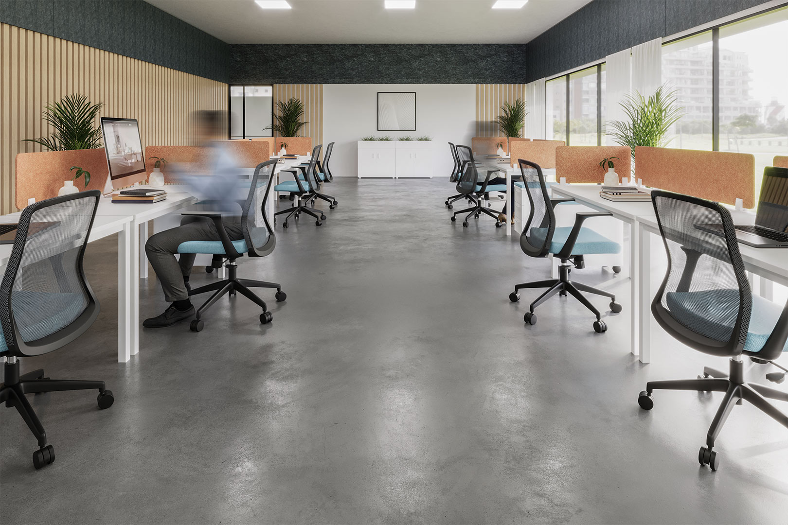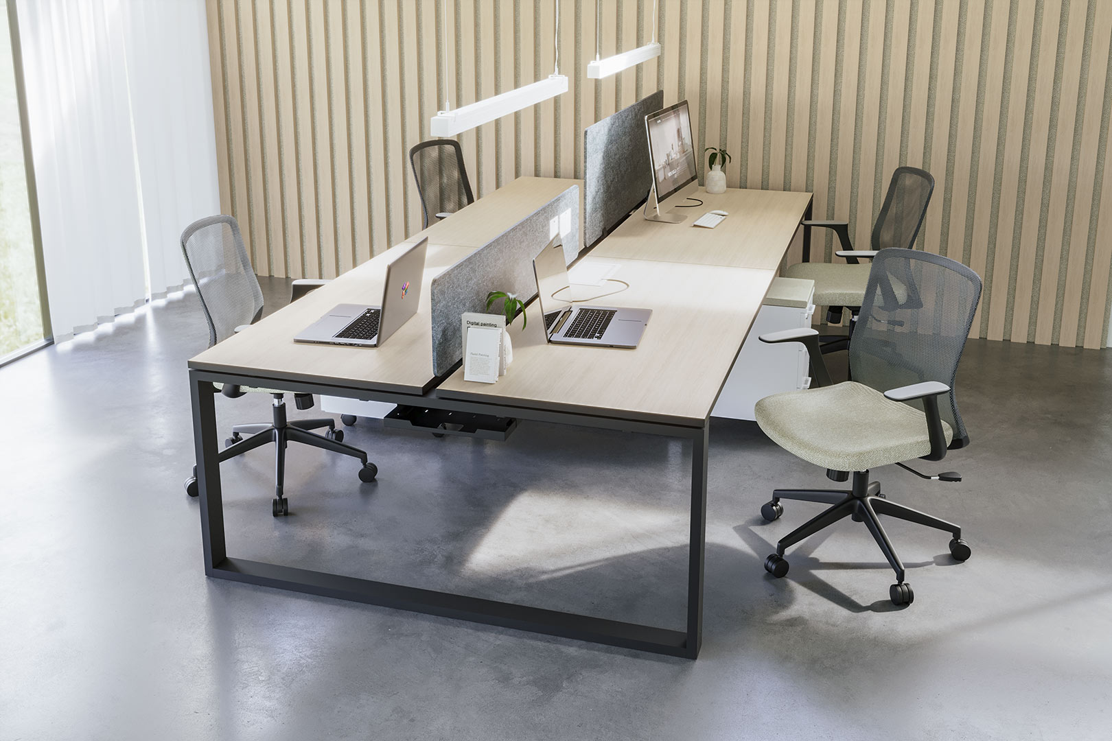 La incorporación de separadores RAW PET en multipuestos permite mejorar la concentración y el confort acústico sin perder conexión visual entre usuarios. Disponibles en diferentes alturas, facilitan adaptar cada puesto al nivel de privacidad necesario, organizando el espacio de forma eficiente y manteniendo un entorno de trabajo más ordenado, cómodo y funcional.