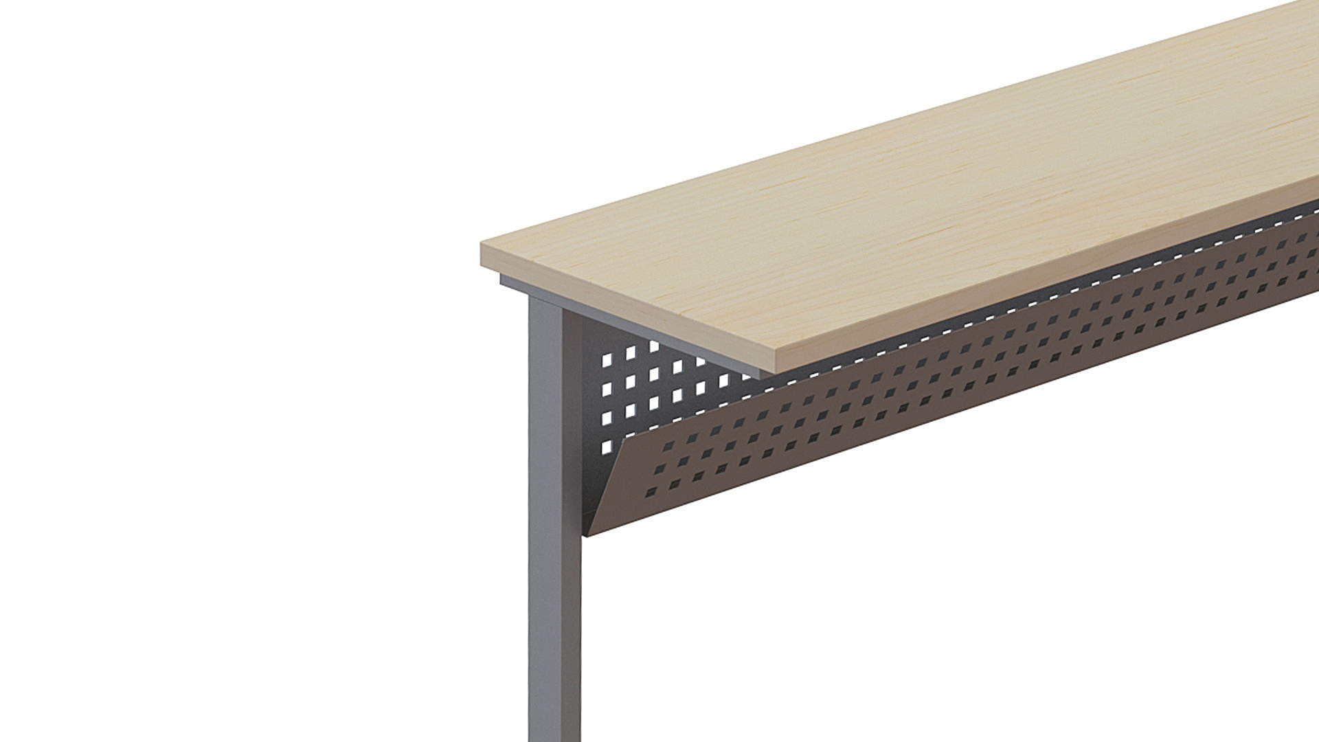 Diseñado como mesa pupitre individual o en línea y dotado con una bandeja portalibros en “V” fabricado en chapa metálica perforada. Existe la posibilidad de elegir entre ambas medidas de ancho y profundidad convirtiéndole en la mejor opción para todo tipo de aulas.
