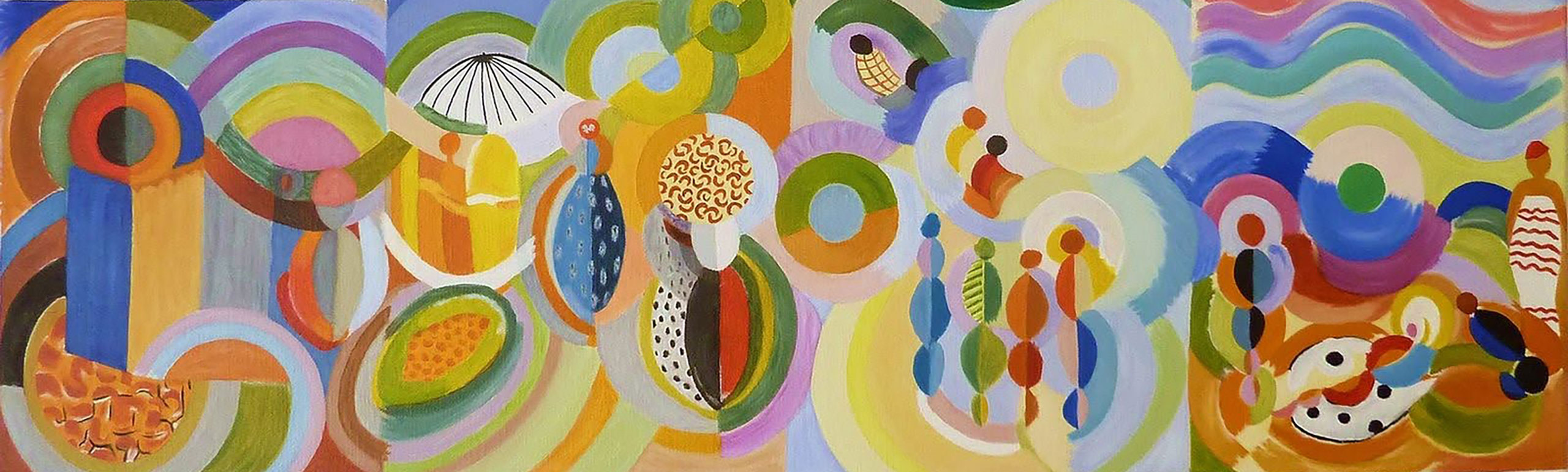 Sonia Delaunay aplicó los principios de la abstracción no solo a la pintura, sino también al diseño textil, la moda, la escenografía y el diseño gráfico. En 1913 presentó sus primeras obras en el Salón de Otoño de Berlín y en el Salón des Indépendants de París, incluyendo sus famosos Prismas eléctricos, en los que las formas geométricas se combinan para crear una sensación de energía y dinamismo. Su amistad con el poeta Blaise Cendrars la llevó a ilustrar el poema La Prose du Transsibérien et de la Petite Jehanne de France, obra que unía poesía y color de una forma inédita.