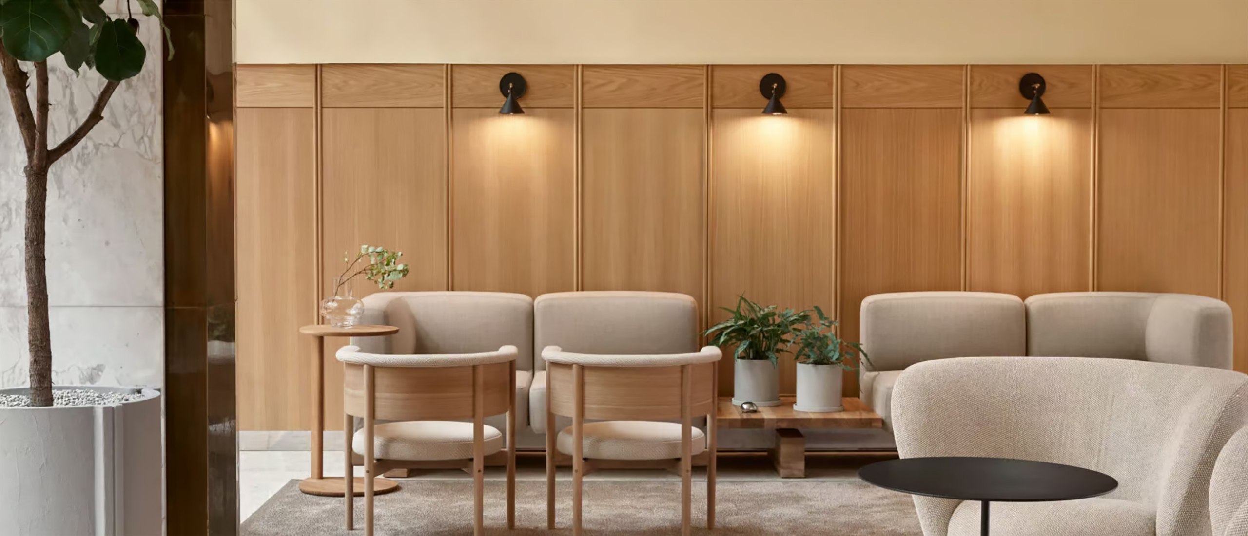 Este proyecto se suma a la tendencia creciente de espacios de trabajo orientados a los servicios, en los que diseñadores y clientes ven la hostelería como una vía obvia para impulsar la interacción y la colaboración tras la pandemia. El “hospitality” en la oficina debe tenerse en cuenta desde el principio hasta el final del proceso de diseño, para que forme parte integral de una experiencia de marca. Para conseguirlo, hay que colaborar con los empleados: preguntarles cómo les ha ido el día, qué necesitan para mantener la energía, qué les molesta y qué les hace felices. . . Vemos la hospitalidad como una forma íntima y personal de ofrecer energía a lo largo del día. La atmósfera creada por los interiores de Fyra establece este tono cordial e íntimo, con un entorno general que recuerda a un coqueto hotel con encanto.